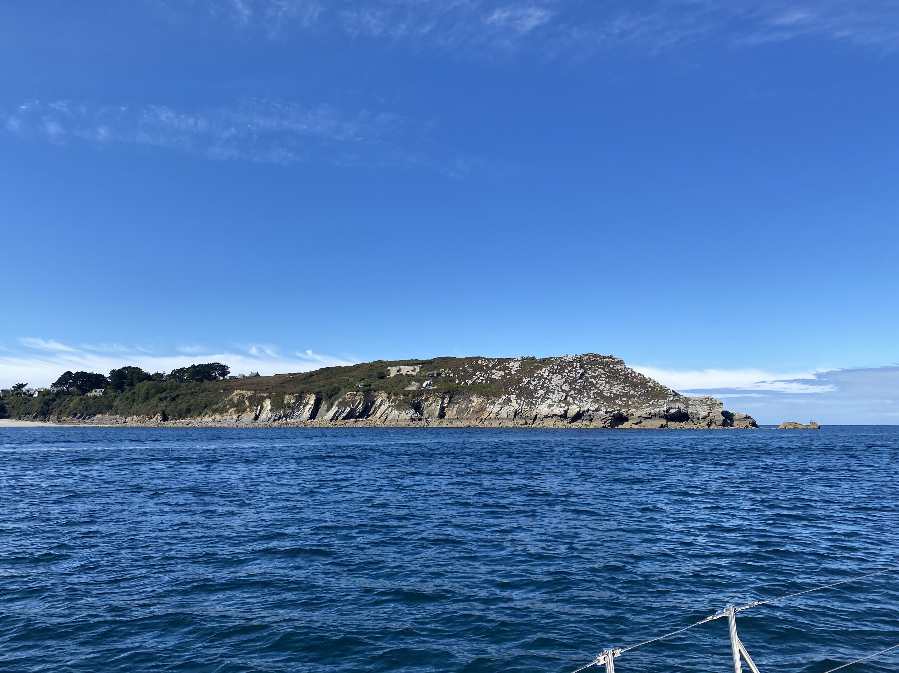 Vi forlod Camaret Sur Mer d. 31. August lidt over middag. Egentligt var området værd at dvæle lidt ved. Der var mulighed for gode hiketure, en simpel havn, hvor du kunne få de fleste dimser, endda en sejlmager og rigger var lige over på den anden side af lystbådhavnen. Naboen Jean-Pierre og konen delte ud af deres erfaringer (de ventede på reservedele til deres motor), dem kunne man godt ha’ snakket lidt mere med. Men vi ville ikke miste det gode vejrvindue, som havde været over Biscayen det sidste stykke tid. For hvornår ville det ellers komme igen? Selvom vinden var svag, og vi måske først ville få lidt vind sidst på turen, så stak vi afsted til Spanien.