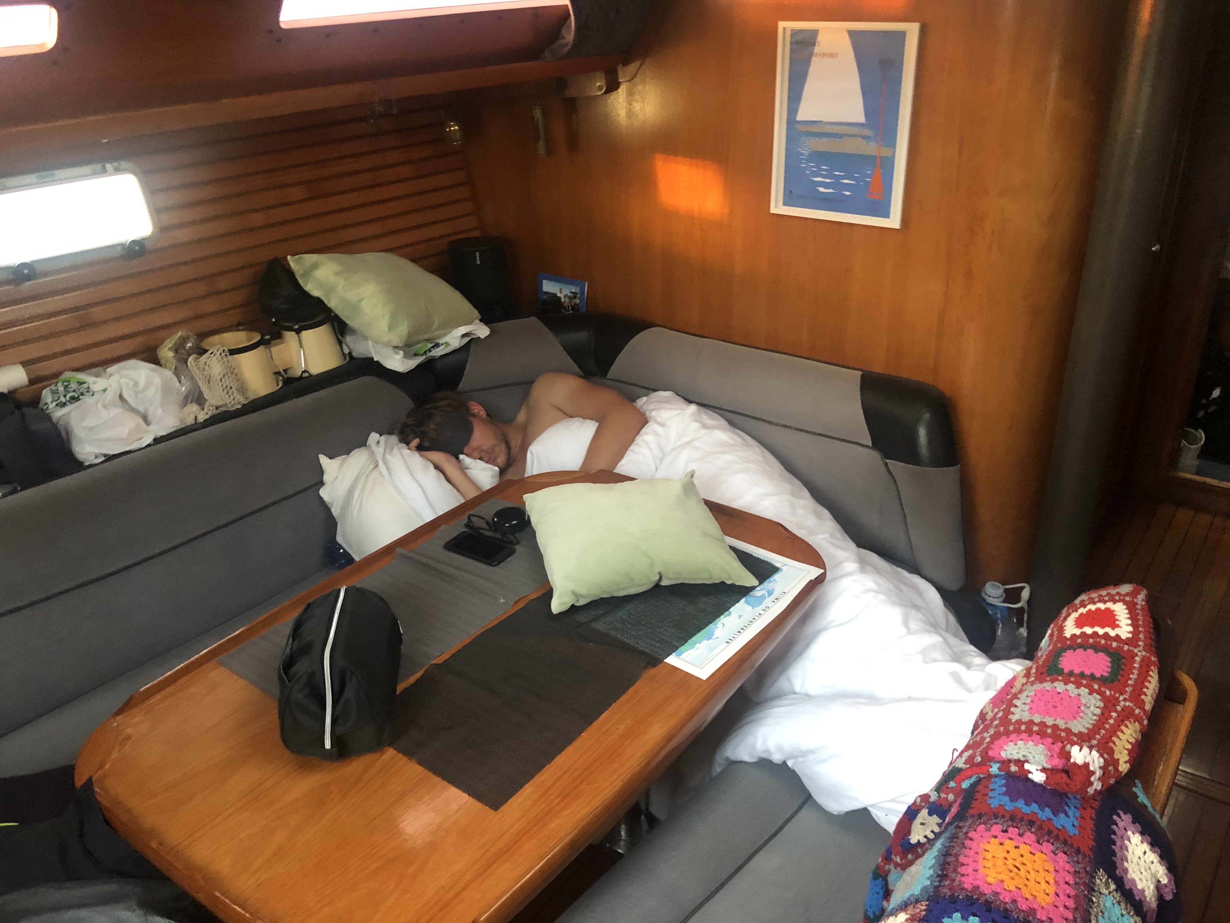 Om natten skiftes vi til at holde nattevagt i 3-4 timer ad gangen. Vi sov i cockpittet.