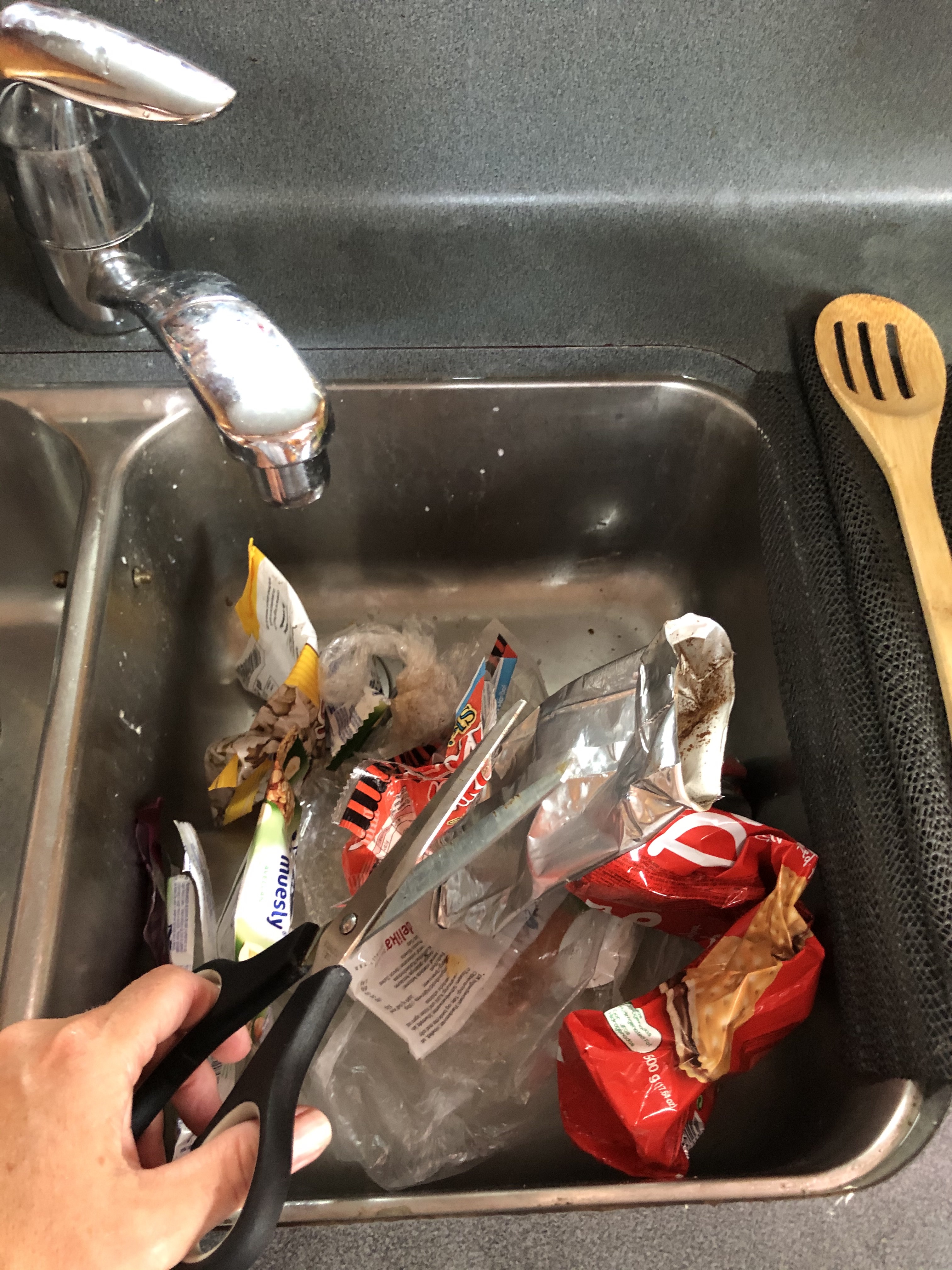 Klipper skrald så det ikke fylder så meget.