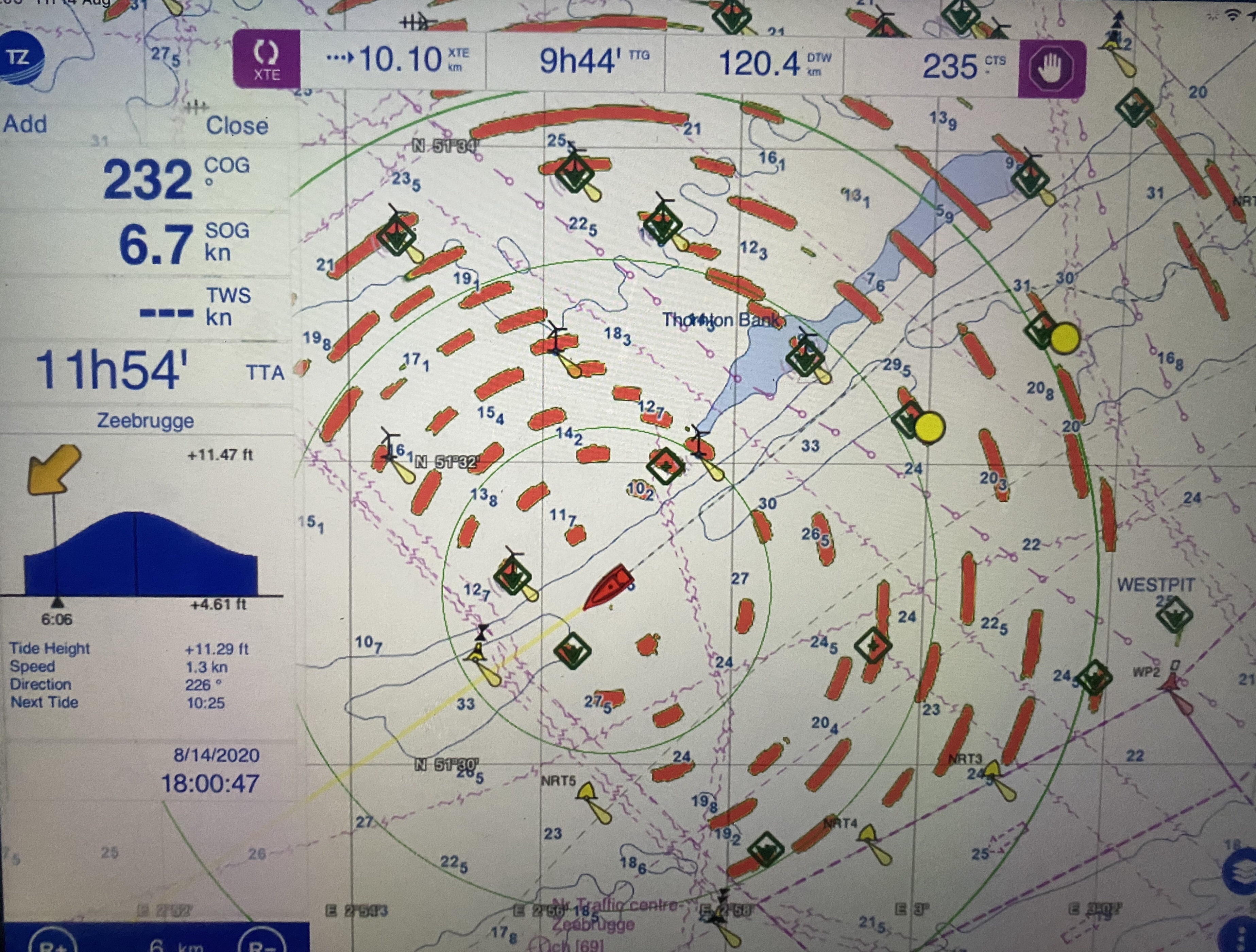 Efter en lille uge i Cherbourg løjede vinden lidt af, og der var et lille vejrvindue, så vi kunne komme videre. D. 25. August tøffede vi afsted kl 03, for at nå med-strømmen uden for Cherbourg. Vi tjekker altid forskellige vejrudsigter 10 gange dagligt, lægger alternative ruter hvis plan a, b eller c skulle gå i vasken. Vinden havde været i nord nogle dag, og var løjet af, og vi var klar på en tur til Roscoff – en 15 timers tur. Men vinden var overhovedet ikke løjet af, som udsigten sagde. Og bølgerne krappede bare derud af! Bevares, vi skød en fart på 8 knob i starten, men ikke lige den natsejlads vi havde forudset.