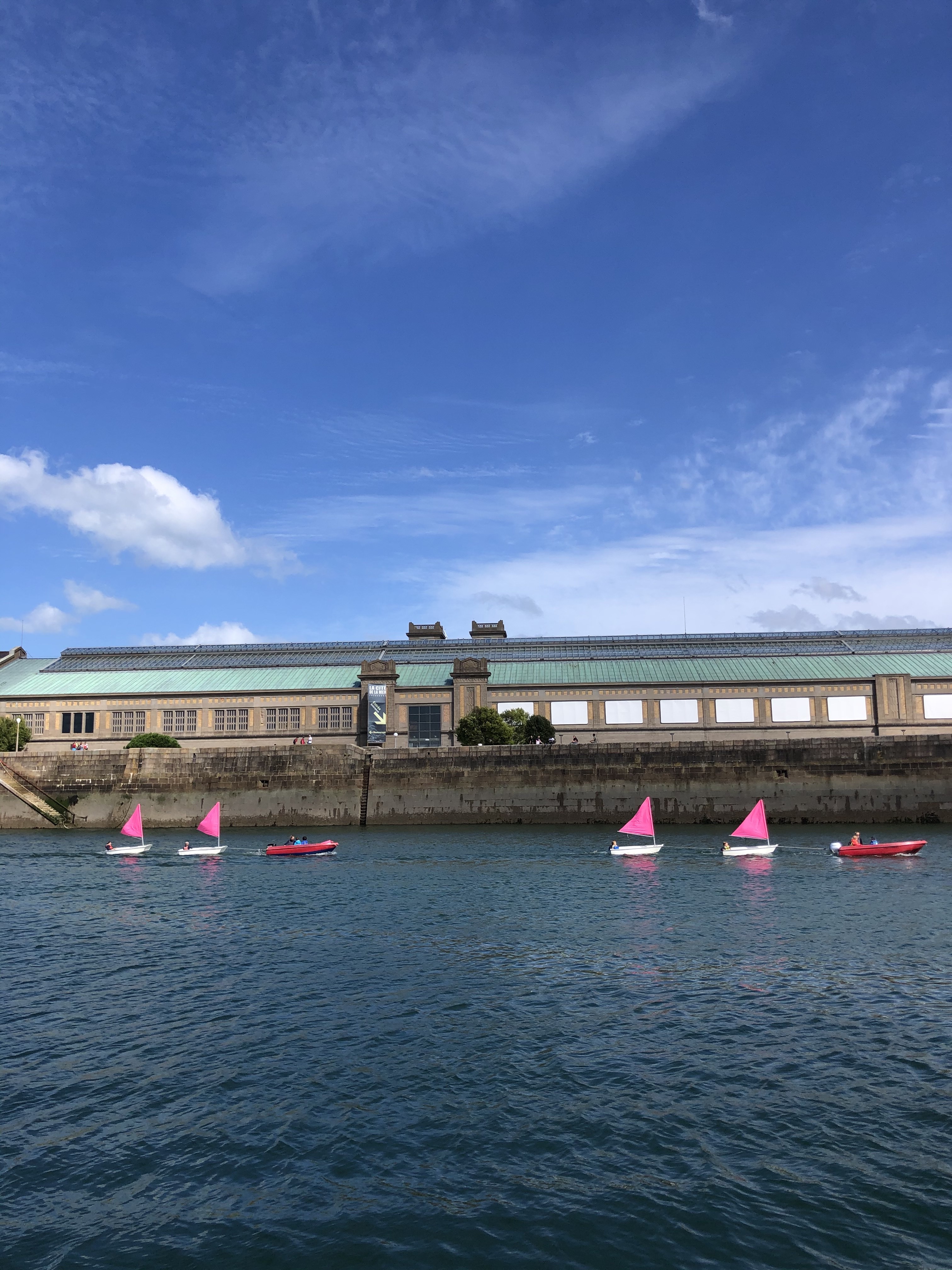 Egentlig ville vi tage turen over Biscayen, men vi tager i havn i Camaret-sur-Mer. Delfinerne holder fest omkring os, det er også det eneste, der kan få smilet frem hos os. Christoffer tror de kan tale ‘har I flere venner’? ‘Hvor skal I hen’!